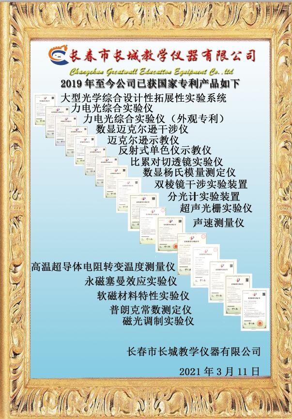 长春市长城教学仪器有限公司自2019至2021年3月申报已获得的国家专利证书共计17份!